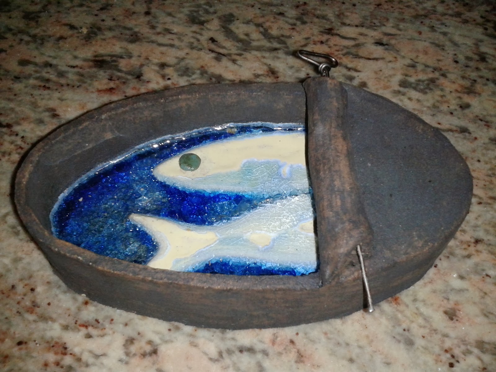 Otra pieza que hice esta pasada primavera fue una teja de búho. Es de barro blanco de alta temperatura, y está hecha con una plancha de barro, utilizando como sujeción una teja de verdad. Luego la pinté y decoré con pigmentos en tonos azules y grises. Muy fácil y socorrida para regalar y poner en cualquier casa con terraza/jardín.